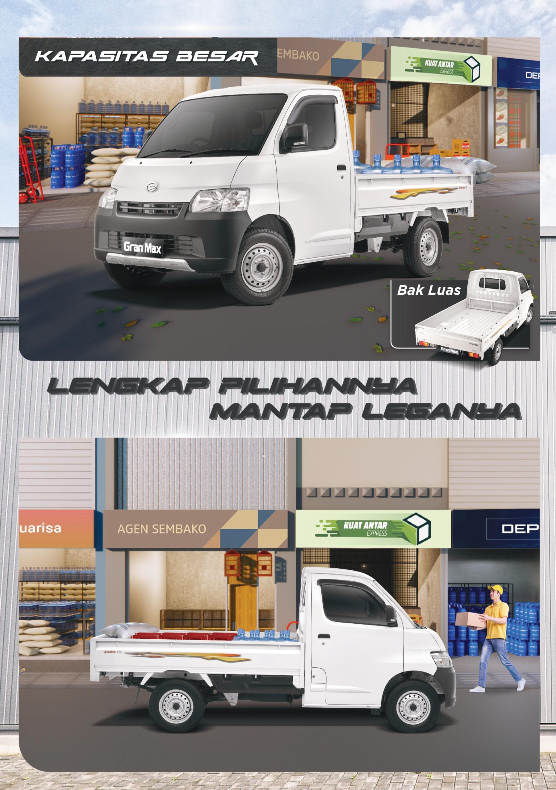 Exterior lengkap, bikin bisnis makin mantap! Untung pun mengalir. Gran Max Pick Up didesain dengan dimensi bak yang luas dan kuat untuk membuat perjalanan bisnis Sahabat semakin untung